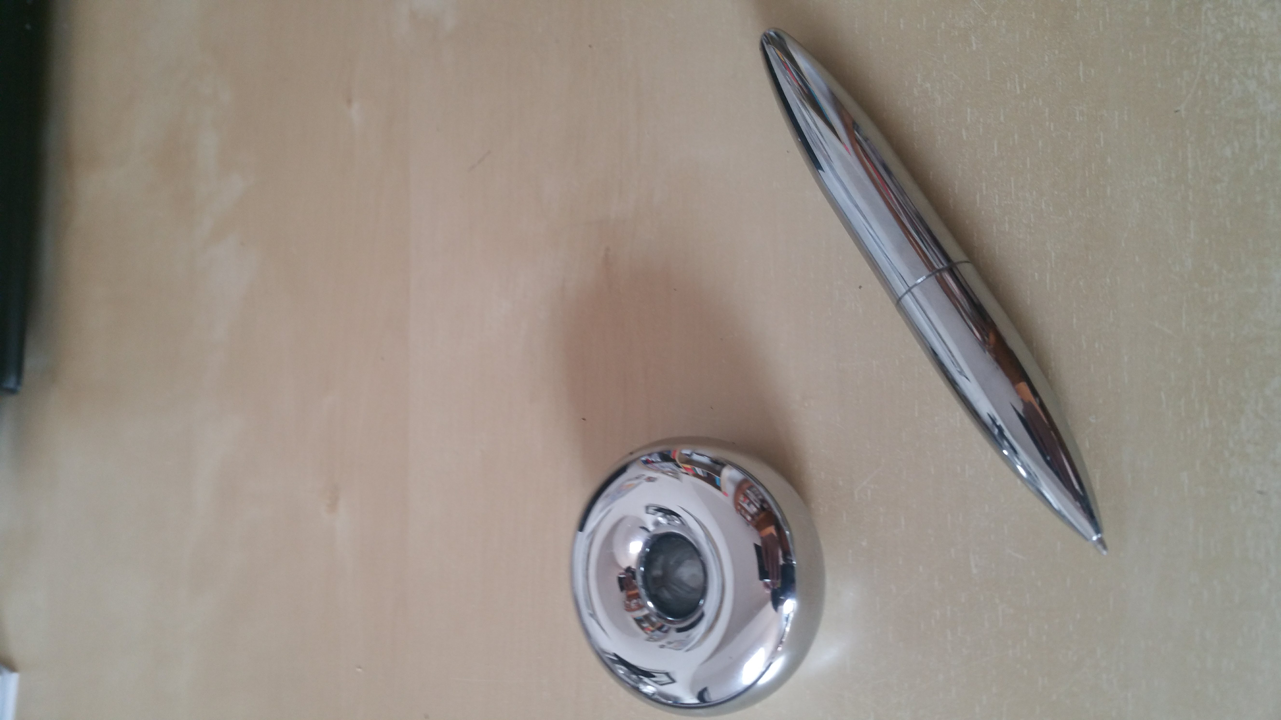 Dieser Kugelschreiber zentriert sich selbt senkrecht in der Halterung.